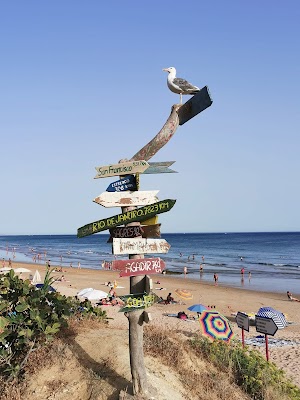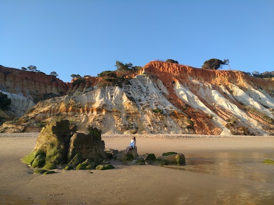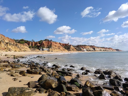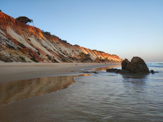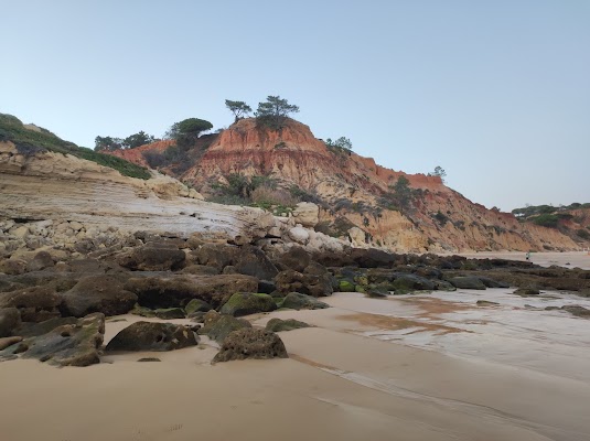 İnanılmaz kumlu plaj! İhtiyacınız olan her şey burada: park yeri (yol asfalt değil), restoran/bar, tuvaletler, şezlonglar ve şemsiyeler (Ekim 2024'te 20 EUR) ve tepesinde güzel çam ağaçları bulunan kırmızı kıyı kayalıklarının muhteşem manzarası! Mükemmel Algarve manzarası! ❤️