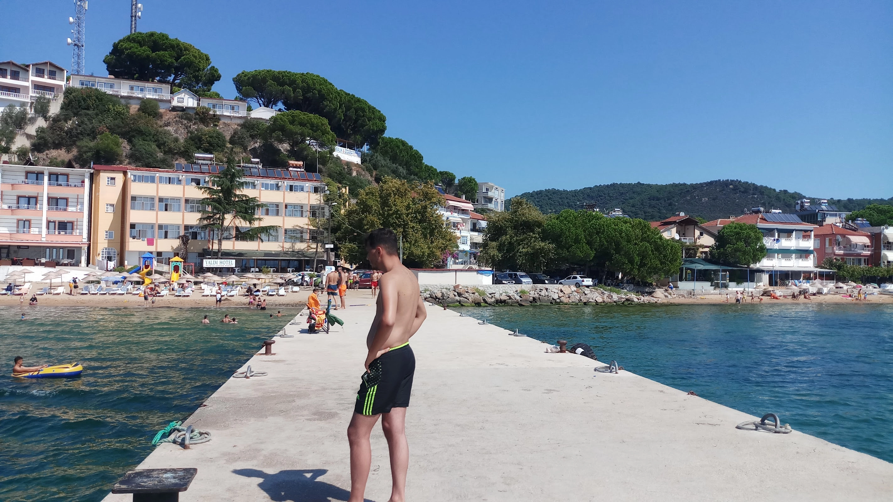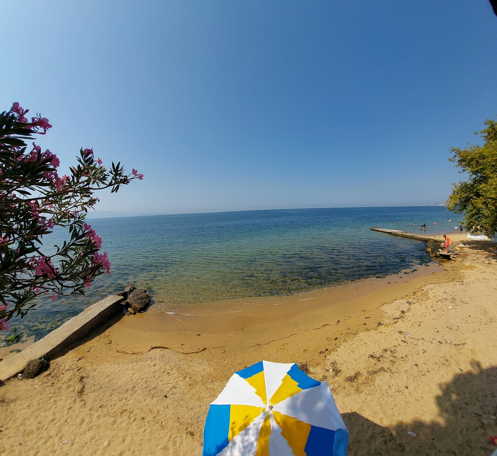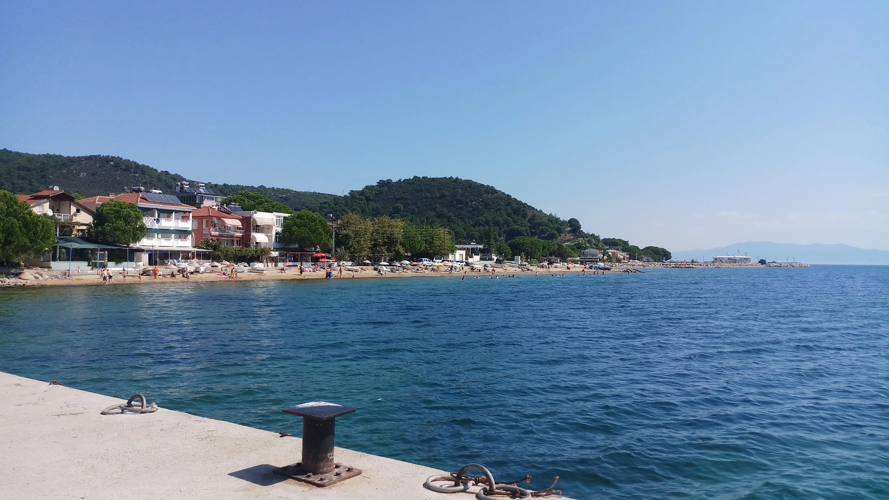Sahil kum ve yüzme bilmeyenler için girer girmez derinleşen bir yer değil. Çok temiz bir denizi yok ama açılırsanız keyif alırsınız. Sahil kısmı küçük. Ücretsiz bir plaj. Alışveriş yapabileceğiniz birçok market mevcut. Günübirlik için yeterli ama çok fazla birşey beklemeyin.