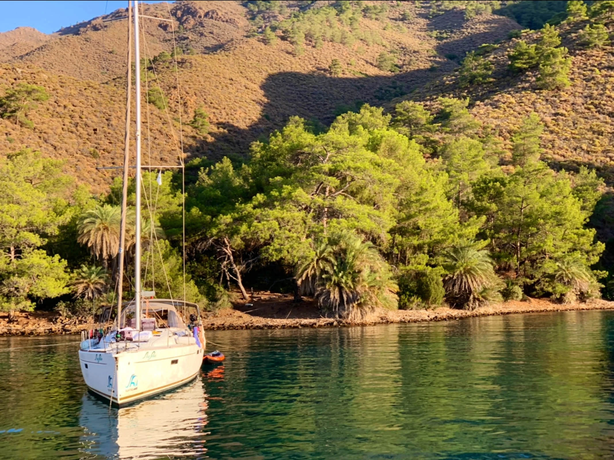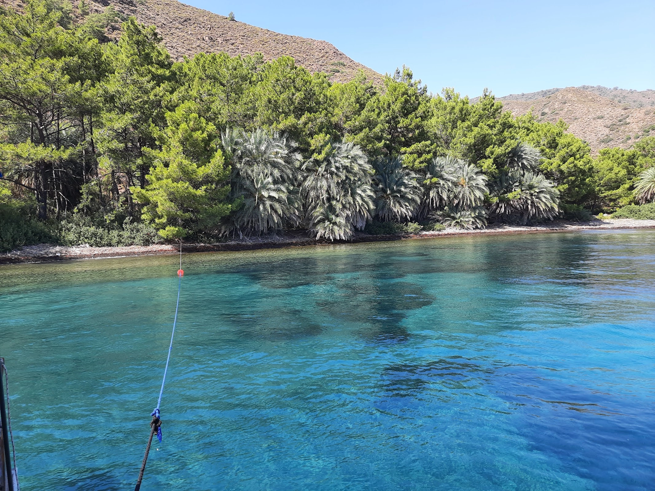 Kıyı yelkenli tekneler için fazla sığ. Dolayısı ile uzun koltuk halatları ile bağlanmak gerekiyor. Deniz temiz. Hakim rüzgara kapalı bir koy