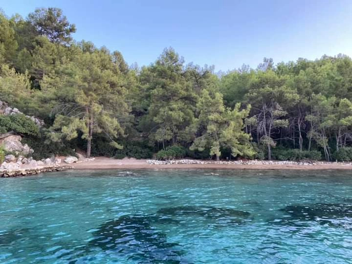 Tekneyle geldik; ağaçları; denizi; balıkları ile harika bi koy ?