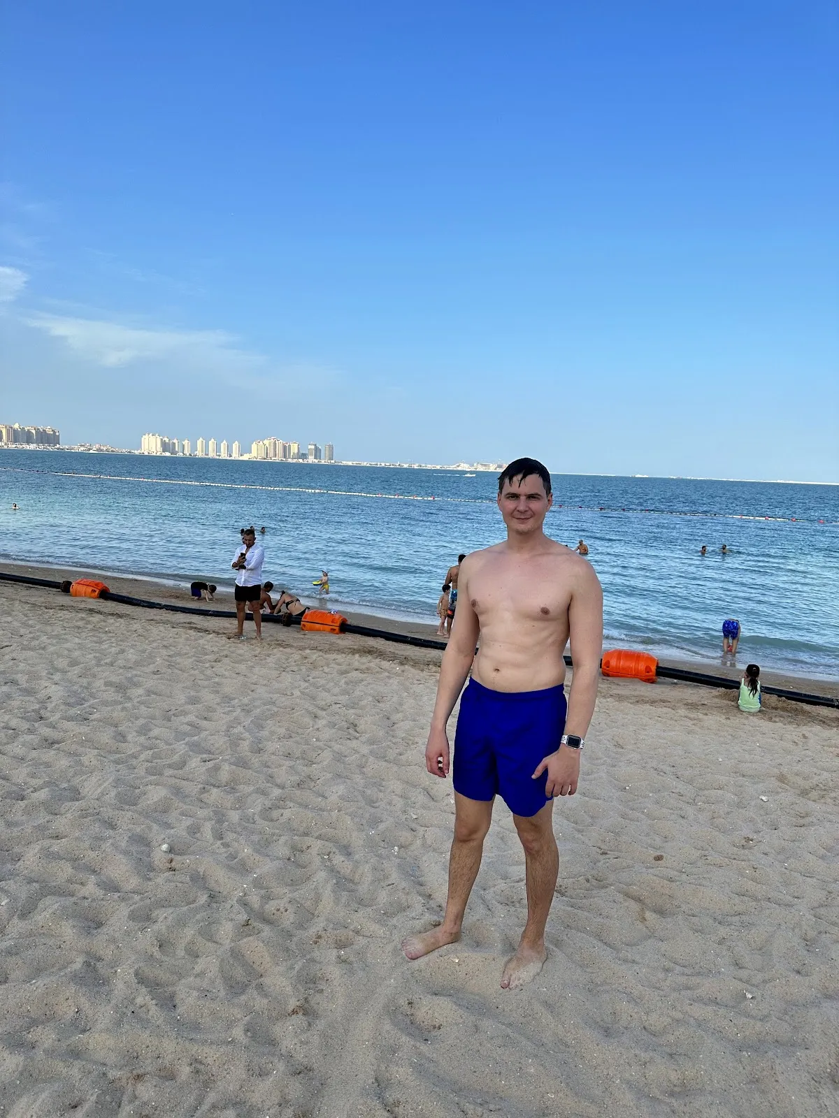 West Bay Beach in Doha, Qatar, is a modern stretch of beach overlooking the city. Its wide sandy beach, open-water swimming areas, and seaside walkways make it a popular recreational spot for both locals and visitors. It's a great spot to admire Doha's striking skyscraper skyline.